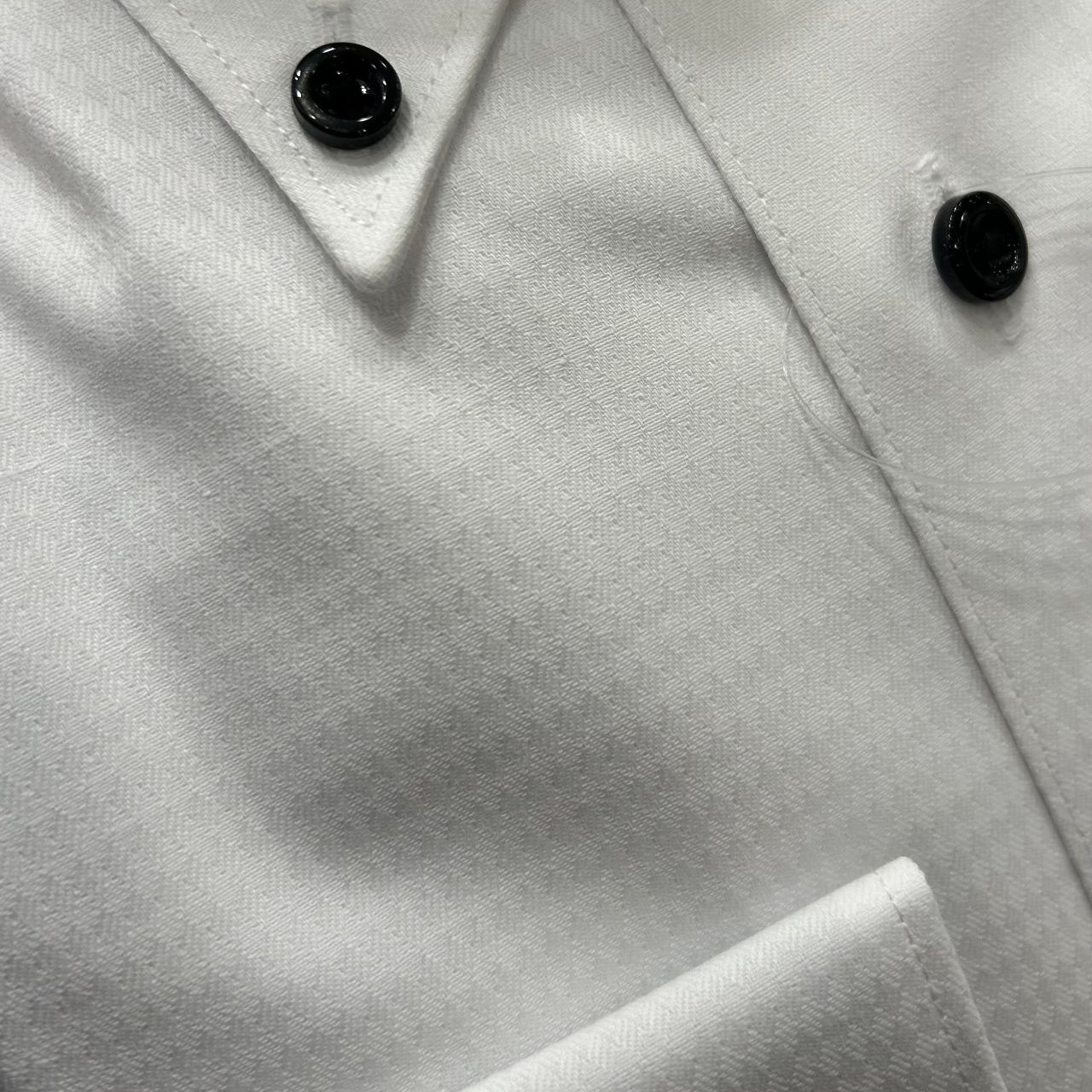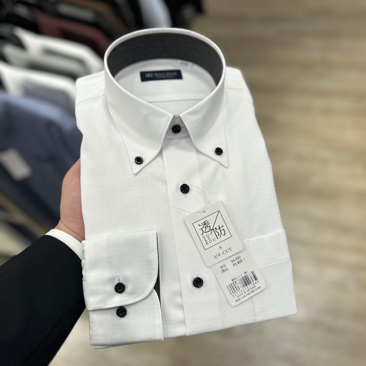 襟とカフス裏は汚れ防止にもなる人気の濃色で◎