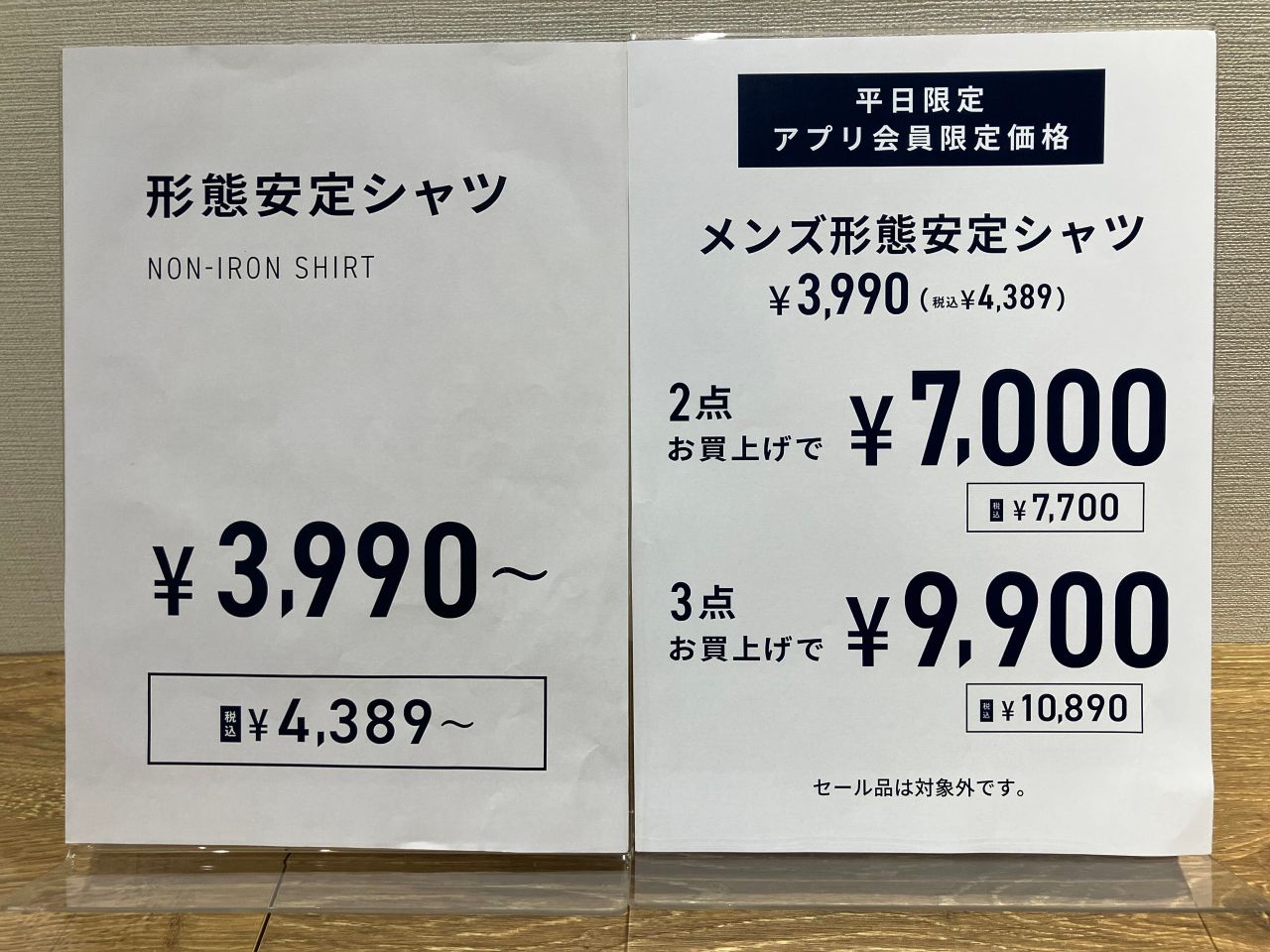 税込¥4.389のシャツが2点、3点お買い上げで