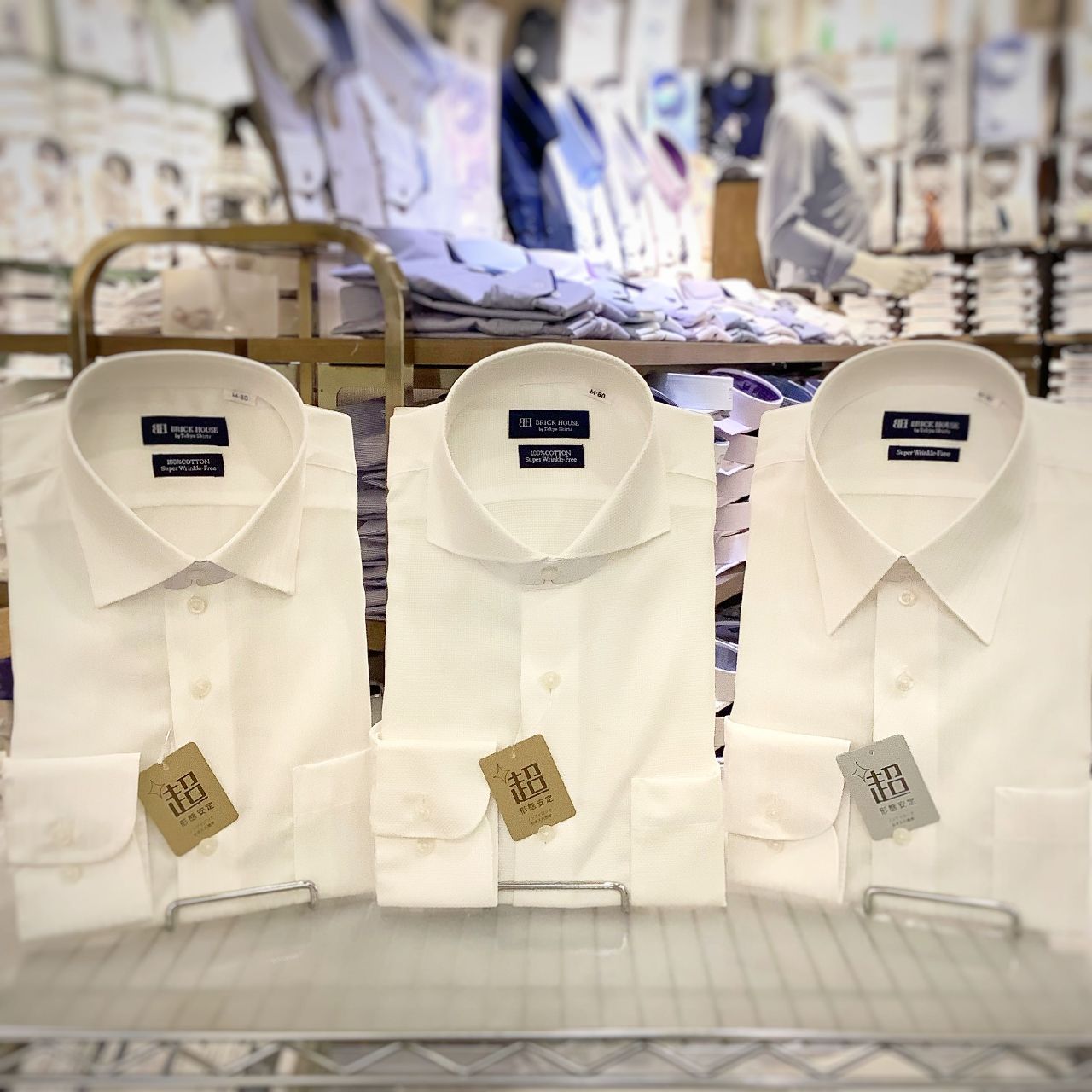いずれのシャツも白糸と白ボタンを使用していて